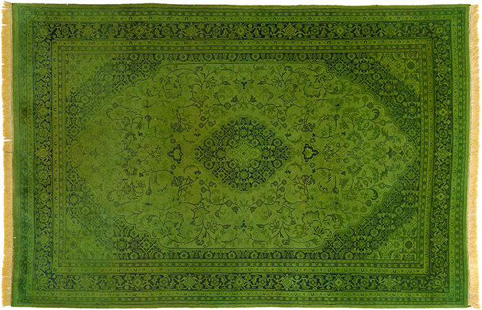 Teppich findenFärbung von Teppichen aller Provenienzen in kräftigen Trendfarben. Das ursprüngliche Muster bleibt dezent durchscheinend erhalten. Durch ein selbst entwickeltes Färbeverfahren wird der Teppich umwelt- und materialschonend bearbeitet. Die Färbung ist abriebfest und absolut farbecht.