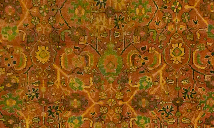 Mahal Teppiche wurden im 19. Jahrhundert stark von britischen Kolonialherschaft beeinflusst, was zu einer erheblichen Veränderung in Sachen Desgin führte. Heutzutage besitzen die Teppiche aus dieser Region fast immer ein Medaillon in der Mitte, umgeben von verschiedenen Mustern und umrandet von einem eher dickeren Rahmen der deutlich zu erkennen ist.