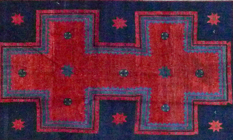 Über die Herkunft dieses Teppiches liegen uns leider keine genauen Informationen vor. Wir bitten um Ihr Verständniss!