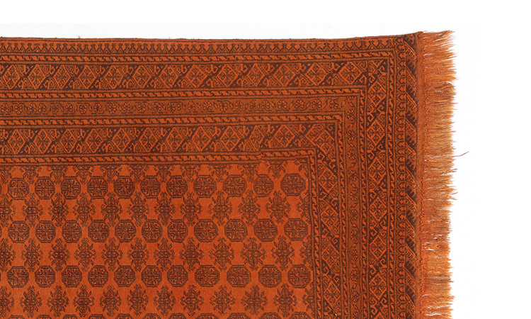 Zu den beliebtesten Teppichen aus Afghanistan gehören unter anderem Khal Mohammadi und Afghan Aqche. Die übliche Farbe ist ein dunkles Rot in verschiedenen Nuancen auf dem Motive wie achtzackige Sterne und dunkelblaue, Beige und Ockerfarbige Blumen vorzufinden sind. Die meist verwendeten Ressourcen beschränken sich auf Wolle, Ziegenhaar und vereinzelt auch Rosshaar.