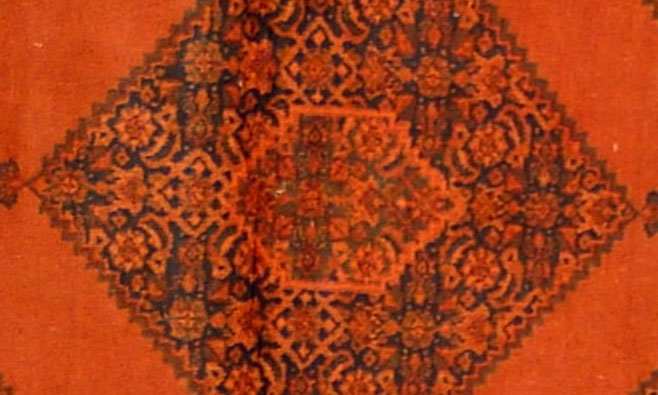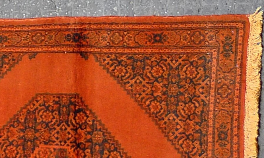 Dieser Teppich stammt aus Moud, einer 300km südlich von Maschad liegenden Stadt, die besonders durch Teppiche bekannt wurde. Das Herat-Muster der Moud-Teppiche kann in manchen Fällen ein zentralles Medaillon beinhalten. Bei dieser Art von Teppichen wird besonders auf Qualität geachtet, es werden doppelte Schussfäden verwendet und beinhalten manchmal sogar Seide um ein bisschen Glanz ins Spiel zu bringen.